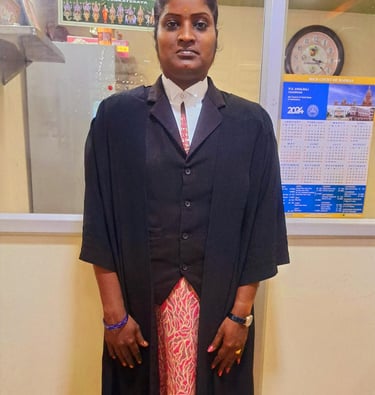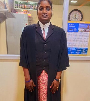 Advocate Gayathri has built a reputation for being both professional and approachable. She listens carefully, respects her clients' concerns, and works tirelessly to prepare for each stage of litigation. Her courtroom demeanor is respectful yet assertive, making her a well-regarded advocate among judges and colleagues alike.